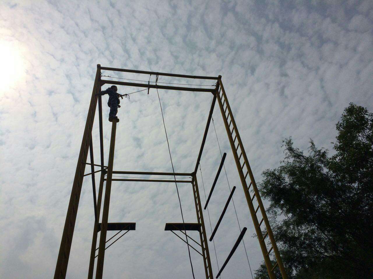 5月30日凌晨,一支由30人組成的隊伍迎著朝霞,乘坐公司的專車直奔西游記公園的玉龍戶外拓展中心。剛下車教練要求所有人立刻換上服裝整隊,所有參加戶外拓展活動的員工都身著統(tǒng)一的迷彩服,隨著分隊、取隊名、想口號,選隊歌等緊張有序地進(jìn)行,教練宣布活動正式開始。